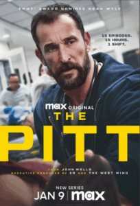 A medical drama set during one intense 15-hour shift in a Pittsburgh ER (“the Pitt”), following doctors, nurses, and trainees as they juggle nonstop emergencies and hospital under-funding. It premiered on Max and drew strong reviews/awards this year.